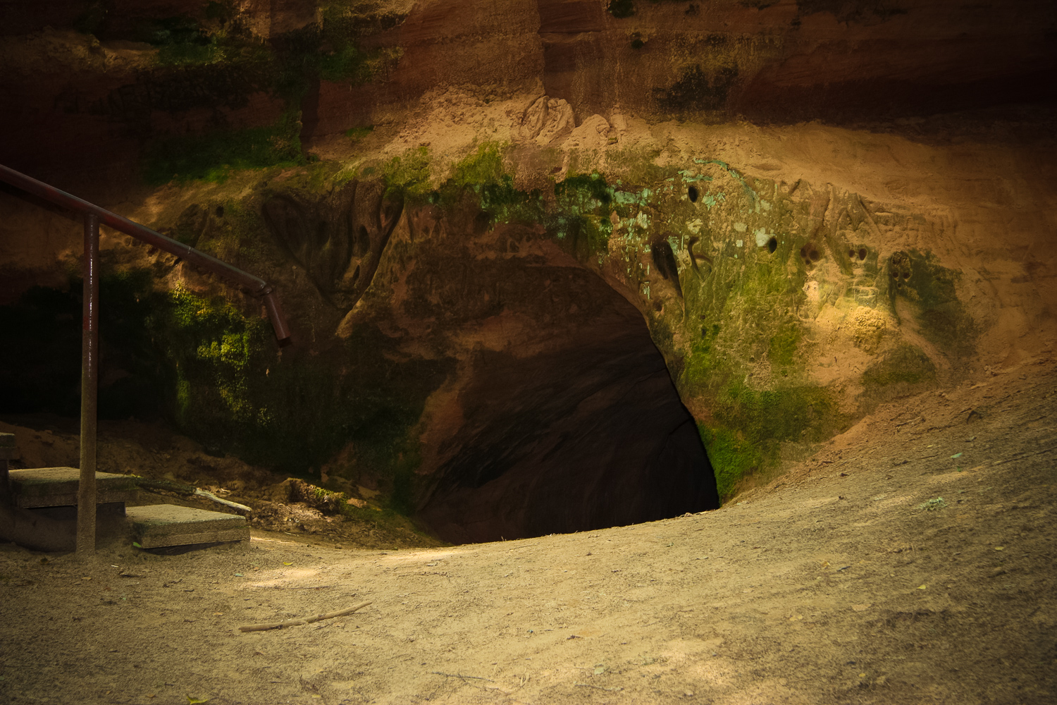 There are many tales about the Devil’s Cellar (Mazsalaca Devil’s Cave). One of the tales is as follows, “About 2 versts further along the road that leads to the Skaņokalns Hill, which is remarkable for its echo, the Devil’s Cave is situated where since time immemorial the Devil dwelled. Not far from the cave, on the bank of the Salaca, in the cliff there is a protrusion from which the Devil preached on Sundays, that is why this place is called the Devil’s Pulpit (Velna kancele). Between the Devil’s Cave and the Devil’s Pulpit, at the Salaca, a spring flows out of a cliff, the water of which is very clear, cool and tasty. Here the Devil who was dwelling in the cave slaked his thirst, that is why this spring is called the Devil’s Souring Churn.” (1978, 3209, in Mazsalaca of Valmiera, recorded by J. Meisters 1966; compiled by I. Ruberte. Valmiera County Tales (Valmieras novada teikas). 1999) Another tale narrates, “In ancient times, it was many years ago, in the surroundings of the nowadays Mazsalaca the Devil appeared. He tortured people and animals. Finally a brave man stood up who was ready to fight against the Devil. He took an axe and went looking for him. Soon he met the Devil. The brave man started to flee and when the Devil caught up with him, he turned around and beheaded the Devil. The head opened its mouth and fell on the ground making a deep pit and rolling to the side of the pit. The head soon turned into ground. And the present Devil’s Cave is the former Devil’s Mouth.” (1978, 2626. M. Luste in Mazsalaca 1966; compiled by I. Ruberte. Valmiera County Tales (Valmieras novada teikas). 1999.) (For more information see: S. Laime, 2009)